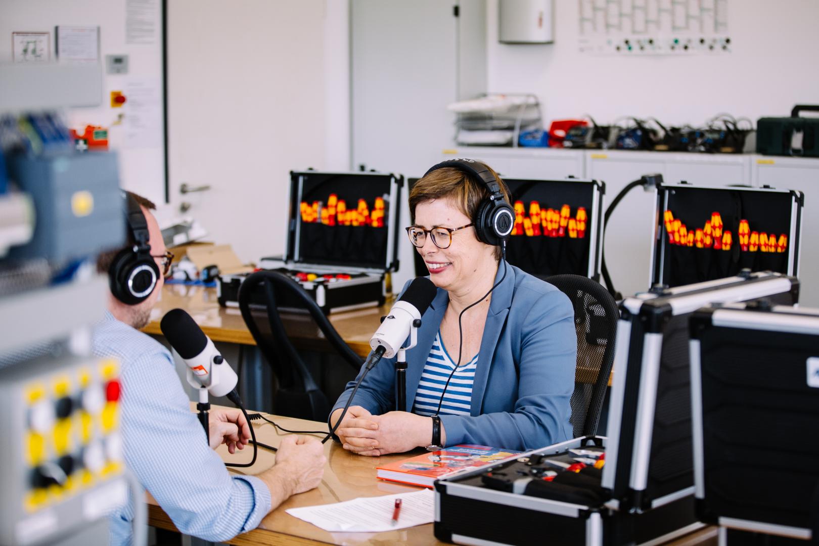 Der Podcast entstand im Elektrotechnik-Schulungsraum der DEKRA Akademie in Bad Cannstatt. Dort sprach Katrin Haupt mit IdeenExpo-Geschäftsführer Martin Brüning auch über Zukunftsszenarien der Aus- und Weiterbildung und darüber, welchen Berufswunsch sie damals als Teenager hatte.