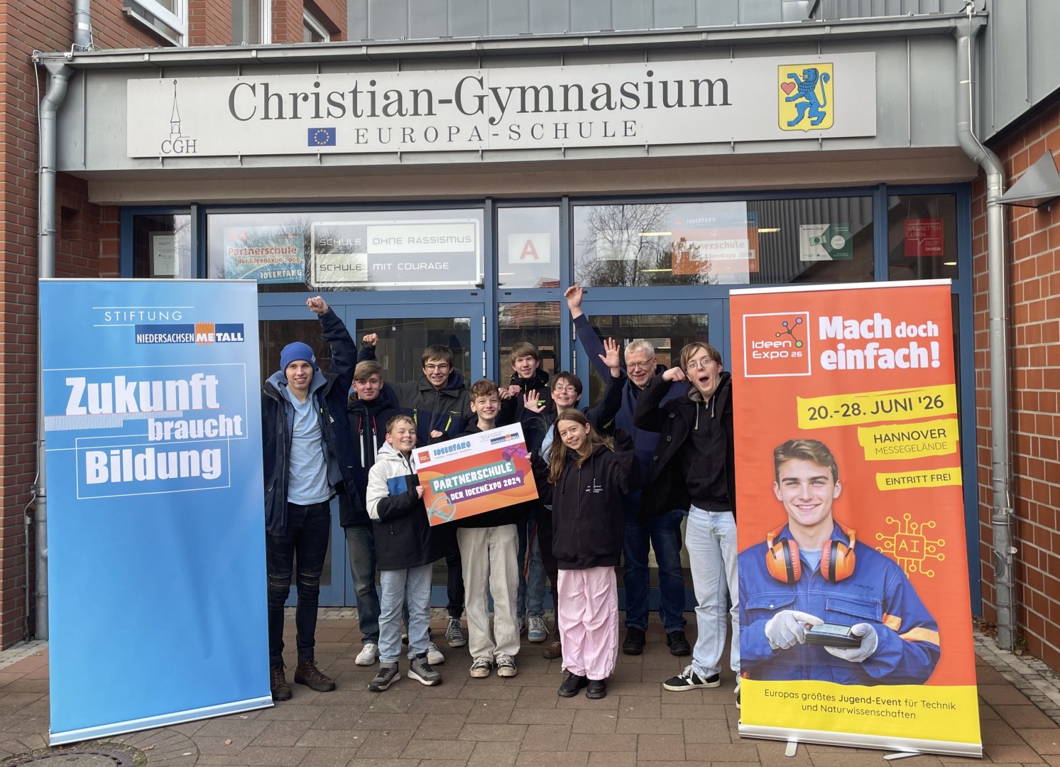 Hermannsburg, 18. November 2025 – Große Freude am Christian-Gymnasium Hermannsburg: Die Schule hatte bei der IdeenExpo 2024 mit einem besonders praxisnahen und innovativen Projekt im Schülerwettbewerb „Ideenfang“ der Stiftung NiedersachsenMetall überzeugt. Im Rahmen eines Pressetermins wurde die Schule nun feierlich als offizielle „Partnerschule der IdeenExpo 2024“ ausgezeichnet – verbunden mit einem Einblick in das eingereichte Projekt und erste Ideen für den kommenden Wettbewerb.