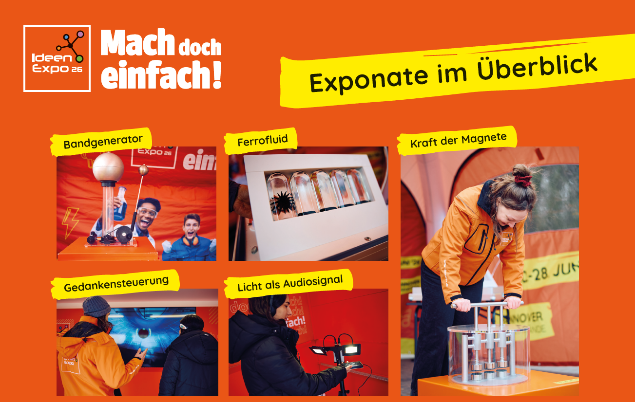 Seit der ersten Ausgabe im Jahr 2007 hat sich die IdeenExpo zu einer europaweit einzigartigen Plattform für MINT-Nachwuchsförderung entwickelt. Mehr als 3 Millionen Besucherinnen und Besucher haben seitdem auf dem Messegelände in Hannover getüftelt, programmiert, experimentiert und ihre Begeisterung für technische Berufe entdeckt.