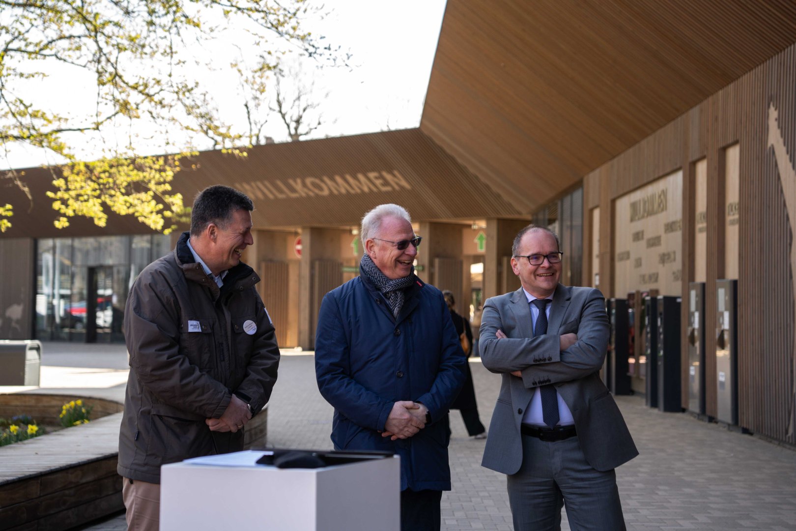 Der neu gestaltete Eingangsbereich des Erlebnis-Zoo Hannover diente beim Pressetermin als anschauliches Beispiel: Die dort installierten Holzfiguren und Gestaltungselemente wurden von der Zimmerei Cordes umgesetzt.